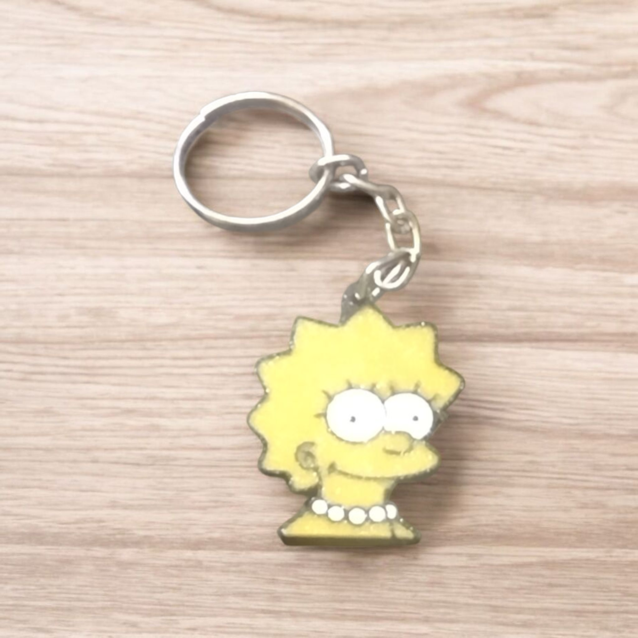 Llavero de Lisa Simpson impreso en 3D con PLA de alta calidad. Medidas aproximadas (Sin cadena): 30 mm de ancho, 37 mm de largo y 3 mm de grosor. Diseño temático único, ideal para regalar o decorar tus llaves.